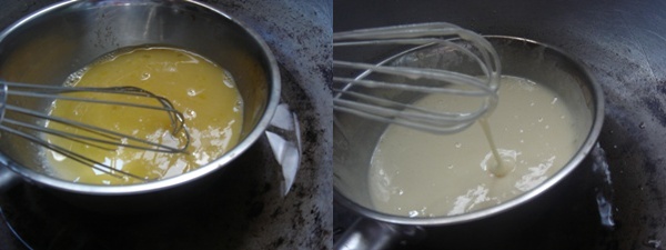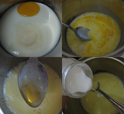 1。牛奶和糖混合,用温火煮溶糖,边煮边搅拌~待冷。