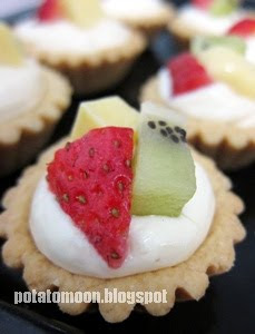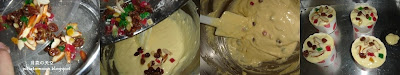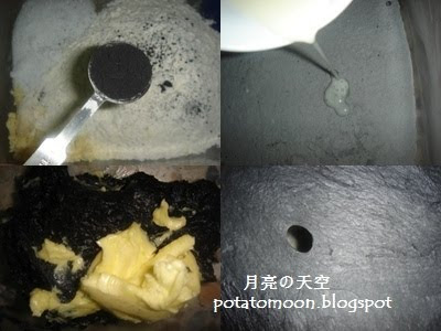 饼皮部份:150g面粉。1汤匙custard粉(8g)。1汤匙奶粉(8g)。1/2汤匙白糖(10g)。1/2粒鸡蛋。100g牛油