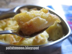 4.烤盘涂油,底部放一些马铃薯,把肉放上然后倒入洋葱料