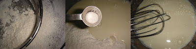 1.將牛奶稍微加溫到手摸不燙的程度(約35度c),將細砂糖及乾酵母加入攪拌均勻 放置5分鐘