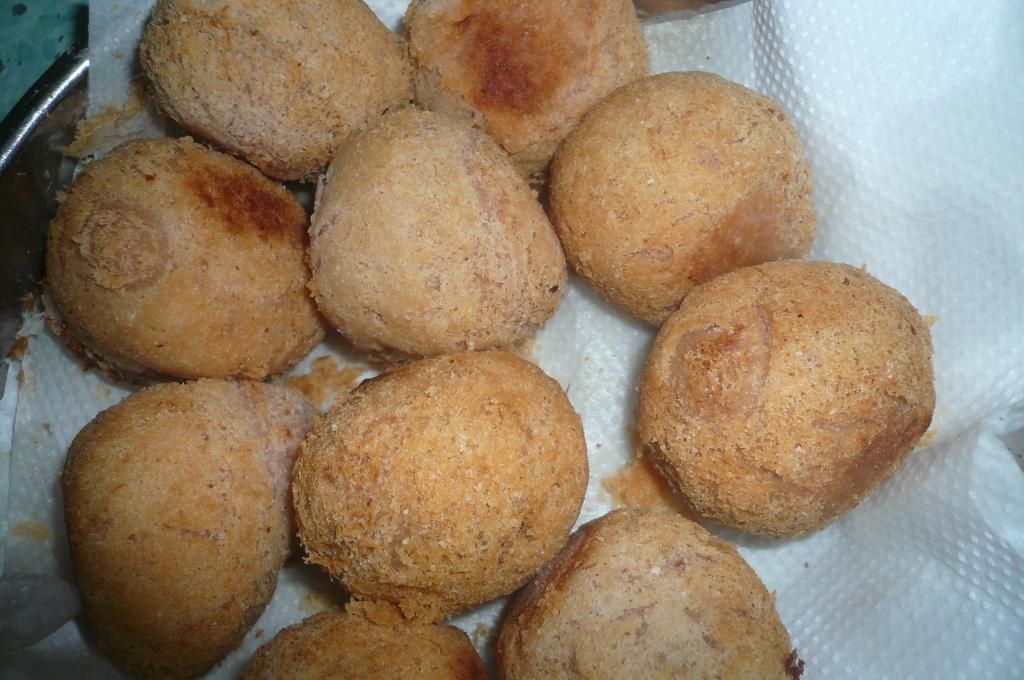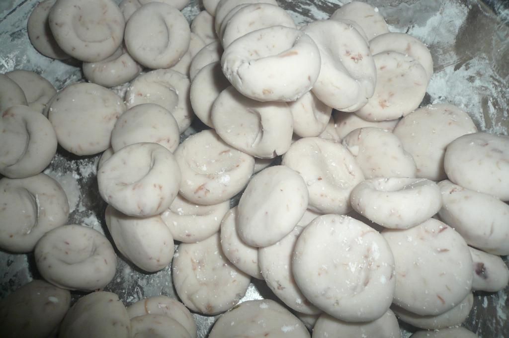 放进滚水烫倒浮起来就可以炒来吃。 把300克的芋头蒸熟加150克的木薯粉 |