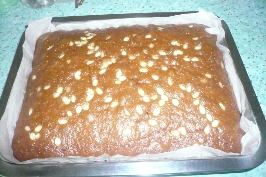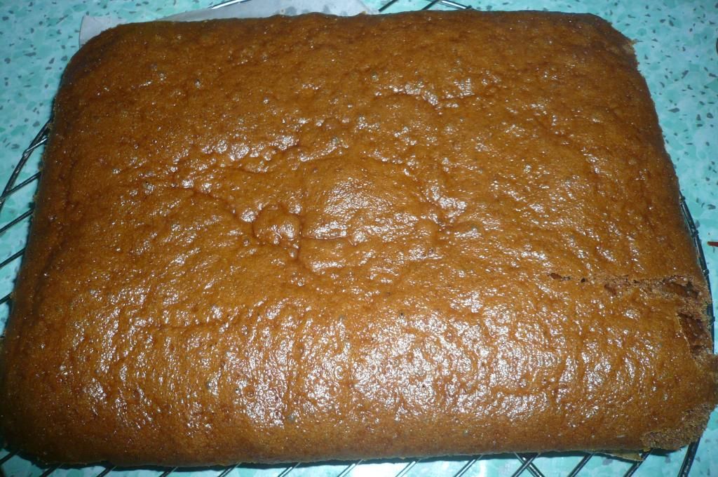 8,将剩下的咖啡面糊在蛋糕上面做花纹。