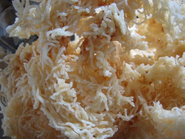 看到一窜窜的好像我买的珊瑚草 ,应该不能炸啦,我没吃过。。。