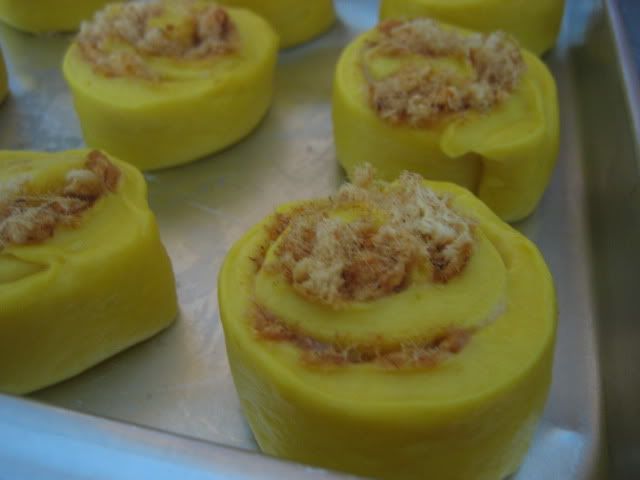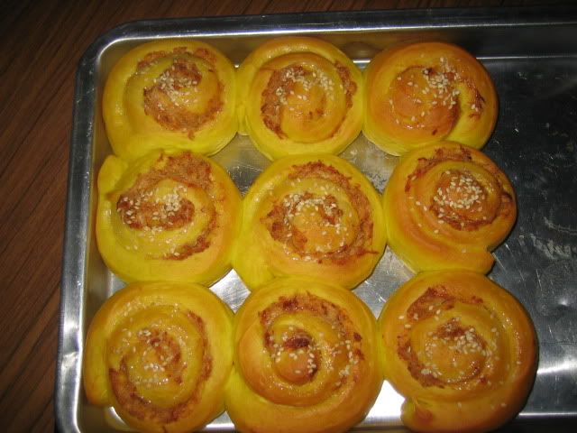 美乃滋南瓜肉鬆面包賣相好好喔 |