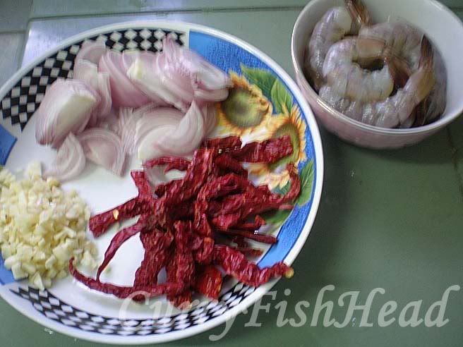 1. 热油,虾稍微炸一下,虾变红色了就可以马上捞起,备用
