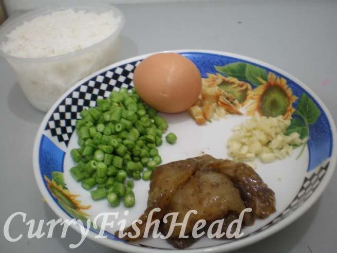 2. 热锅,爆香蒜米和大葱,然后把姜,辣椒干一起炒香