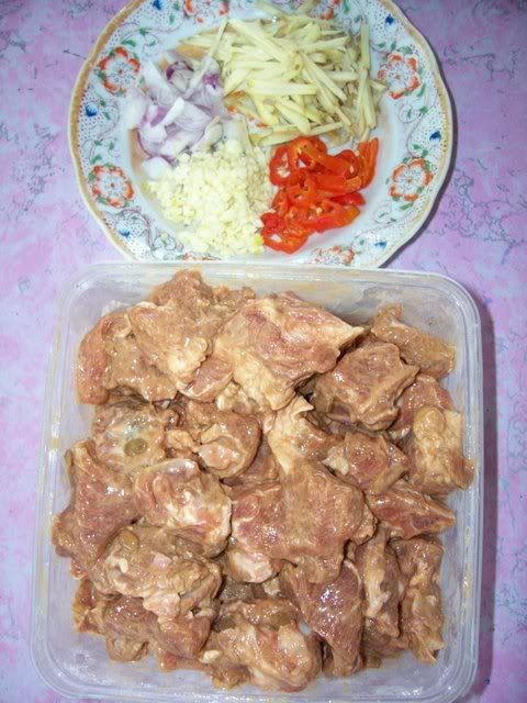 1. 排骨用腐乳, 豆鼓, 生抽, 麻油, 糖, 胡椒粉和生粉掩一晚.