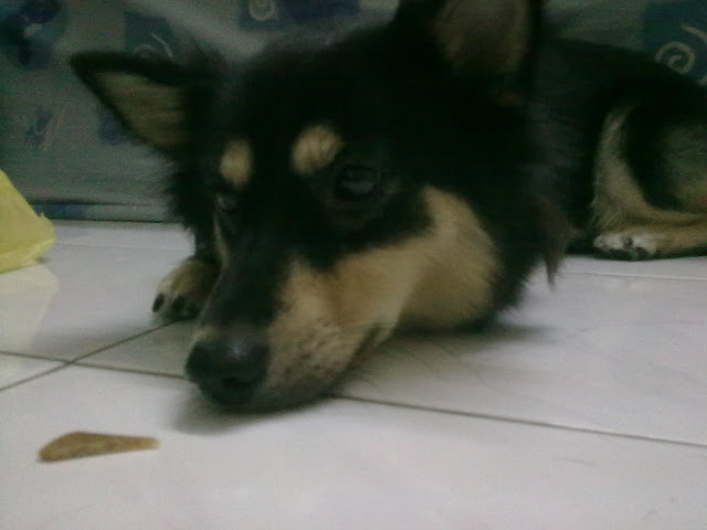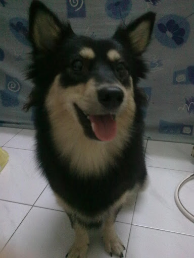 之前阿姨有养一只german spitz, 是全白的。。由于年老了就离开了但是第二天家外面竟然跑来了一只全白流浪的german spitz跟poppy长得一莫一样。大家都说可能poppy不舍得走所以又回来了。。现在那只狗被阿姨收留了也是叫poppy  |