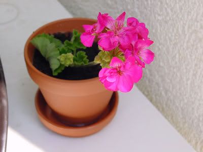 剪下其中一个分枝来插,好像很难找出像那插图所指示的分枝,因为我的天竺葵的分枝都是已经生小花苞了的,不管了,照剪。