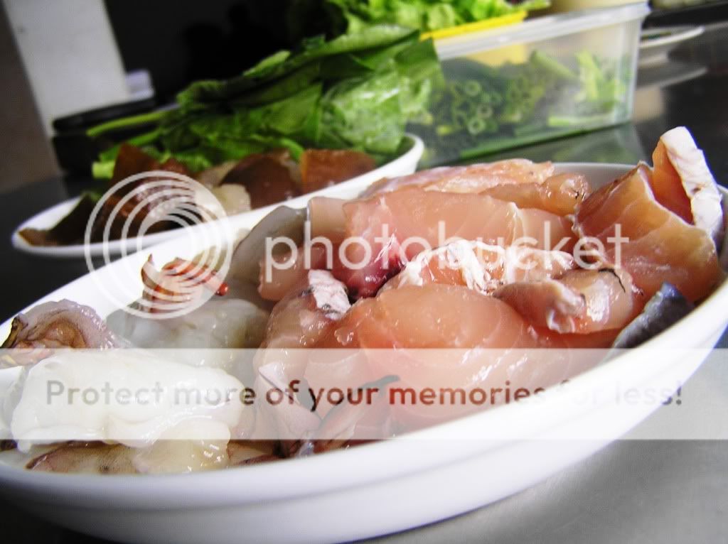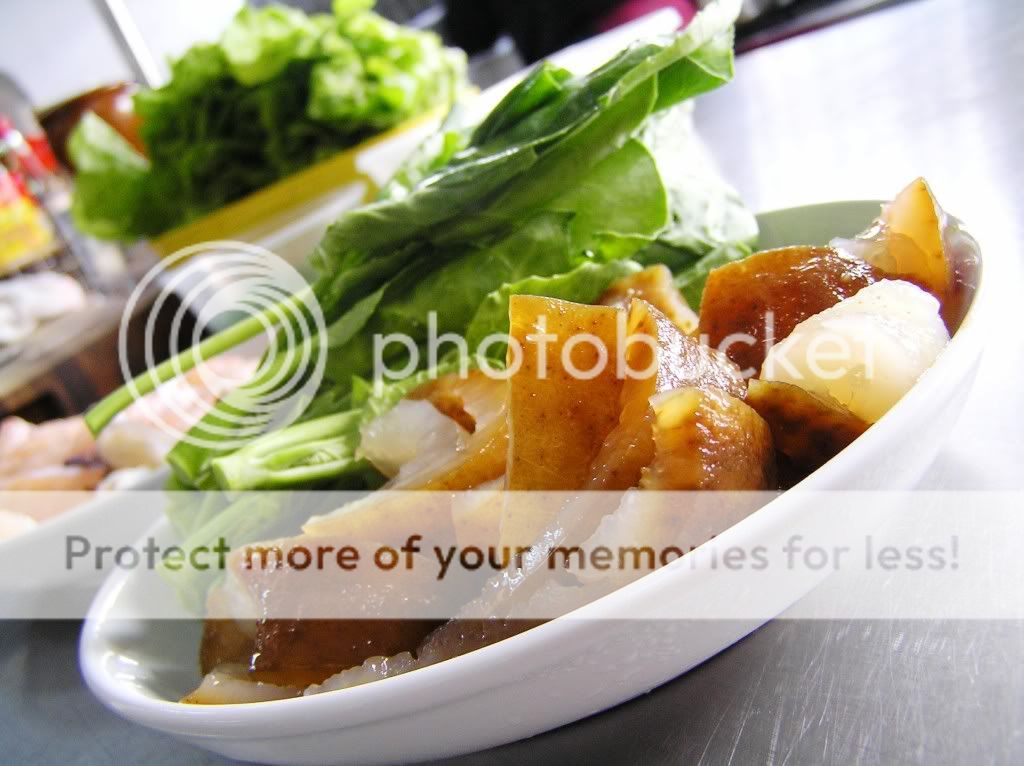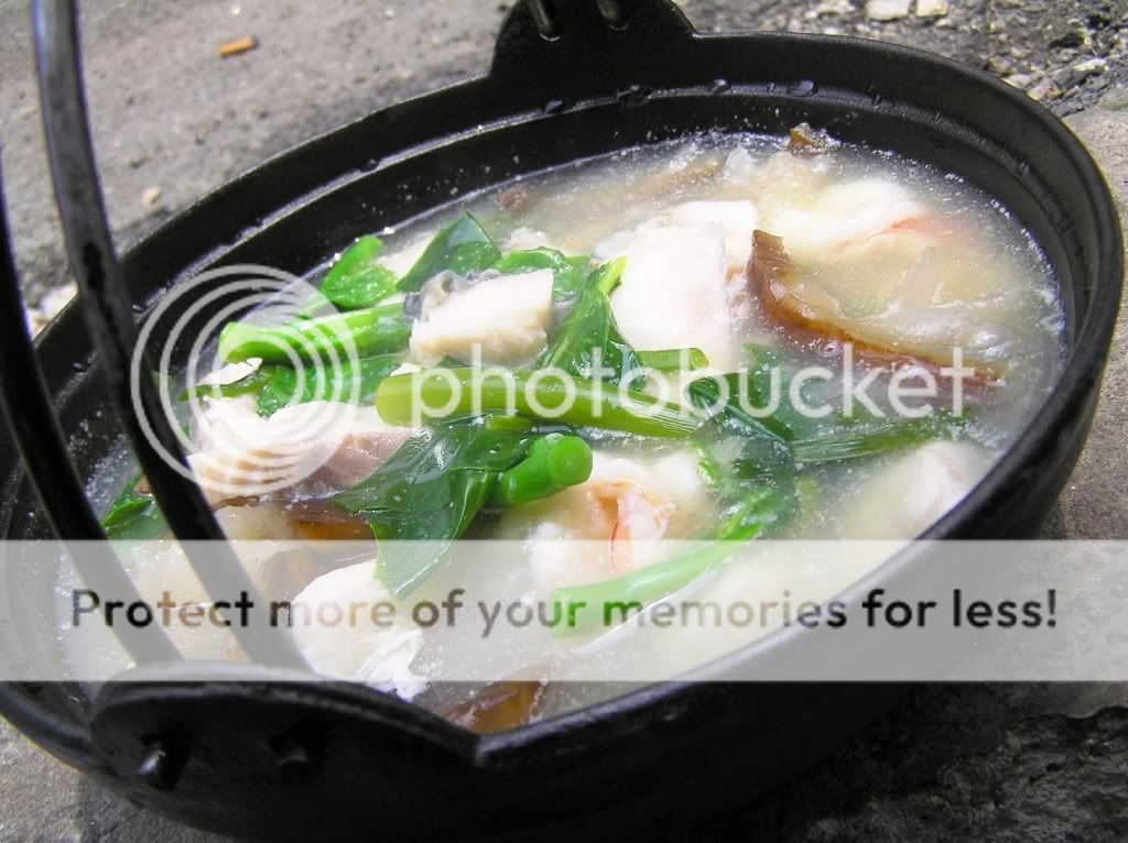 5。芥兰菜是此菜肴味道的最大功劳,让整锅汤清晰了,味道鲜明了!记得勿滚太久,以至菜烂变色了就失去了色香味。 |