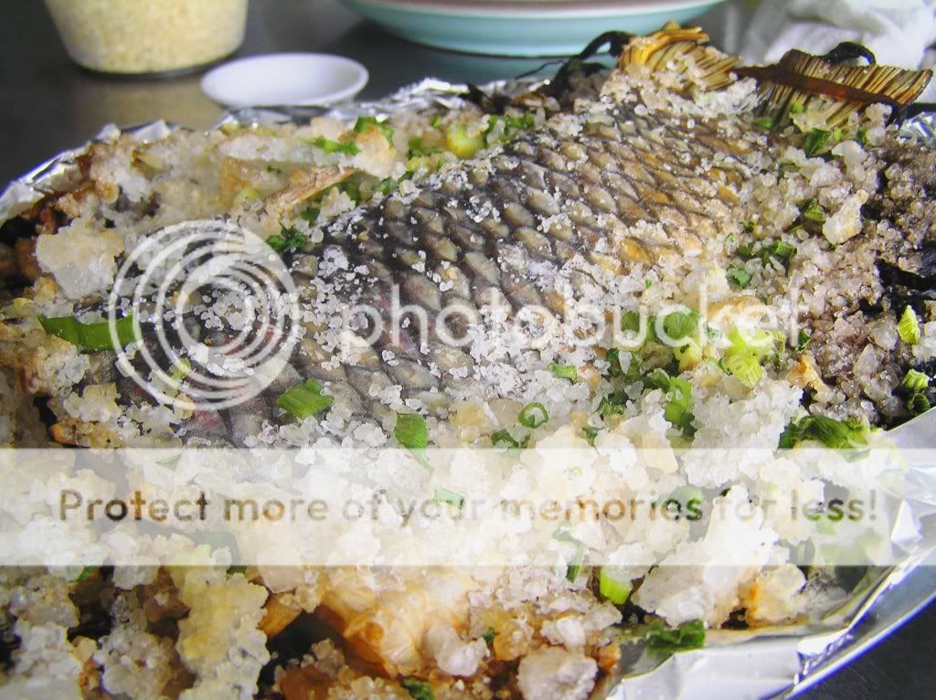 今天养正医师队伍在红曲馆用餐,菜单上出了"招牌冻豆腐" "清炒菜心","清蒸燕丸","肉碎焖土豆",主菜"盐焗鲈鱼尾",`鲈鱼尾适合盐焗,关键是它的肉滑夹油脂嫩滑.首先,端上来的就是"盐焗鲈鱼尾",在其他菜还未来前,大家都开始动筷子了;有两位试菜的时候曾经品尝过,故能道出其吃的艺术;其皮最好吃,轻轻地掀开皮层(带鱼鳞),放入口中去允吸气肉质,一股炭烤香的软流缓缓地从口中分化出来,鱼香味渐渐的清楚,透过舌头的碰触到鱼肉的润滑度,你会觉得那是一种溪水中川流不息的清新感觉,溪中的小鱼逆流中游动的滑,利.由于采用的天然海盐来焗,如此的海盐的鲜甜味道不断的渗透在我们的口水中,咽下这一口鱼香肉质,似乎到了海滩上烧烤的境界了!