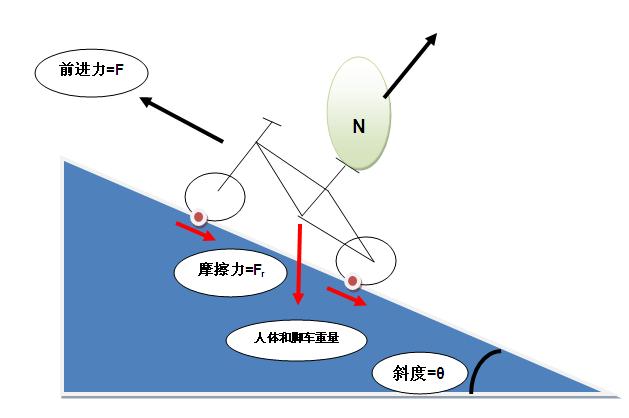 斜度你是无法改变的除非地震。那么,就只剩下那个M,也就是你本身的体重加脚车的重量。