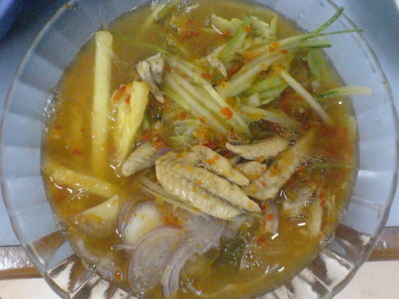 糟糕。。 我一时间忘了要拍下照片。。 结果晚餐时,7个人很快的便把mengkuang炒吃光光了!! 下次有机会再贴上来啦。。