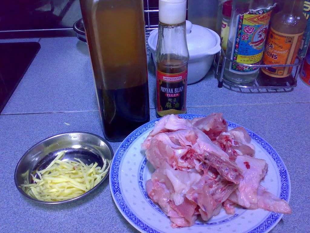 材料:鸡(斩件),老姜,糯米酒,麻油