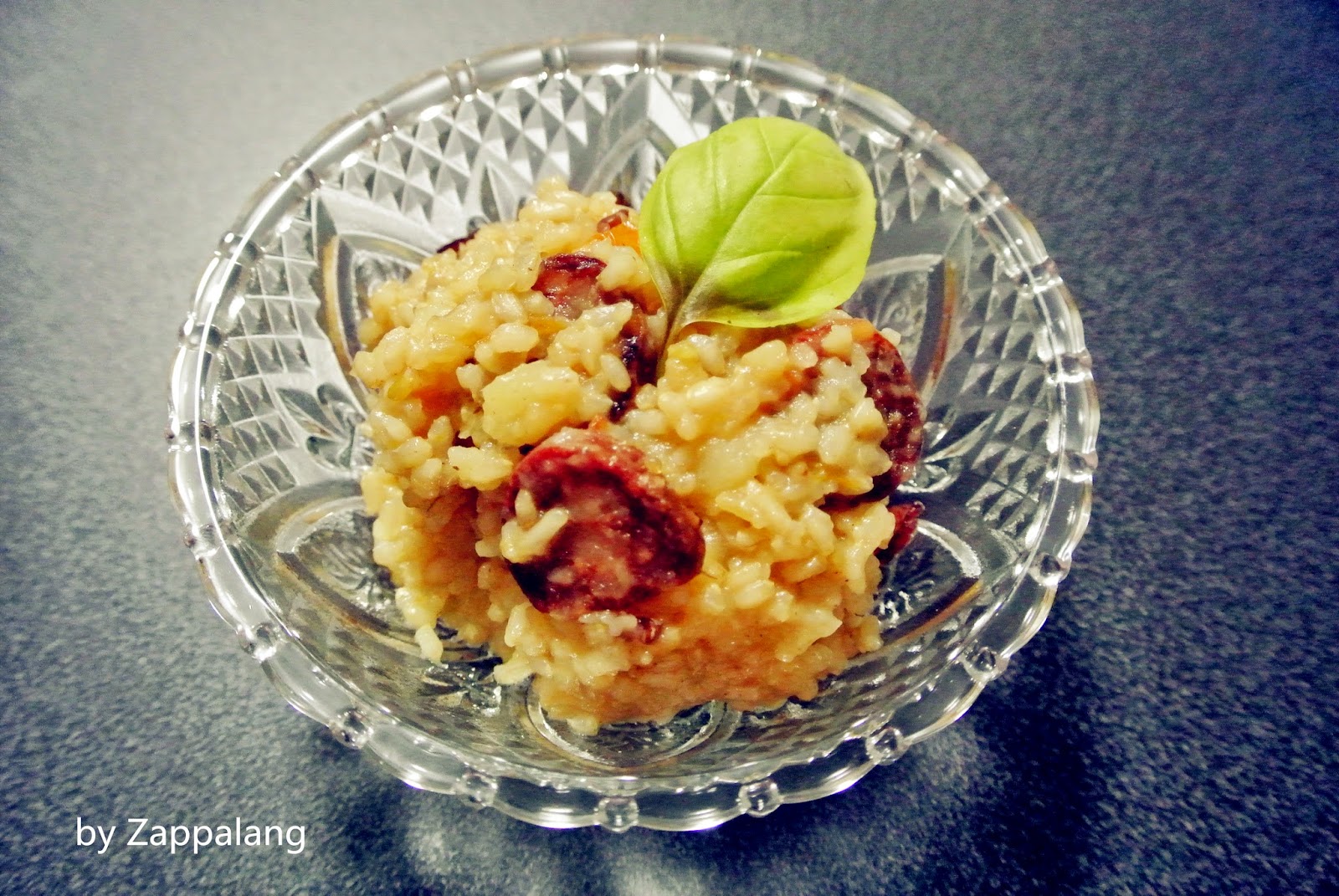 材料: 1个蕃茄,1个洋葱,2-3条培根,1个马铃薯,2根腊肠,1杯半米,高汤适量 (用来代替清水煮饭),盐适量。