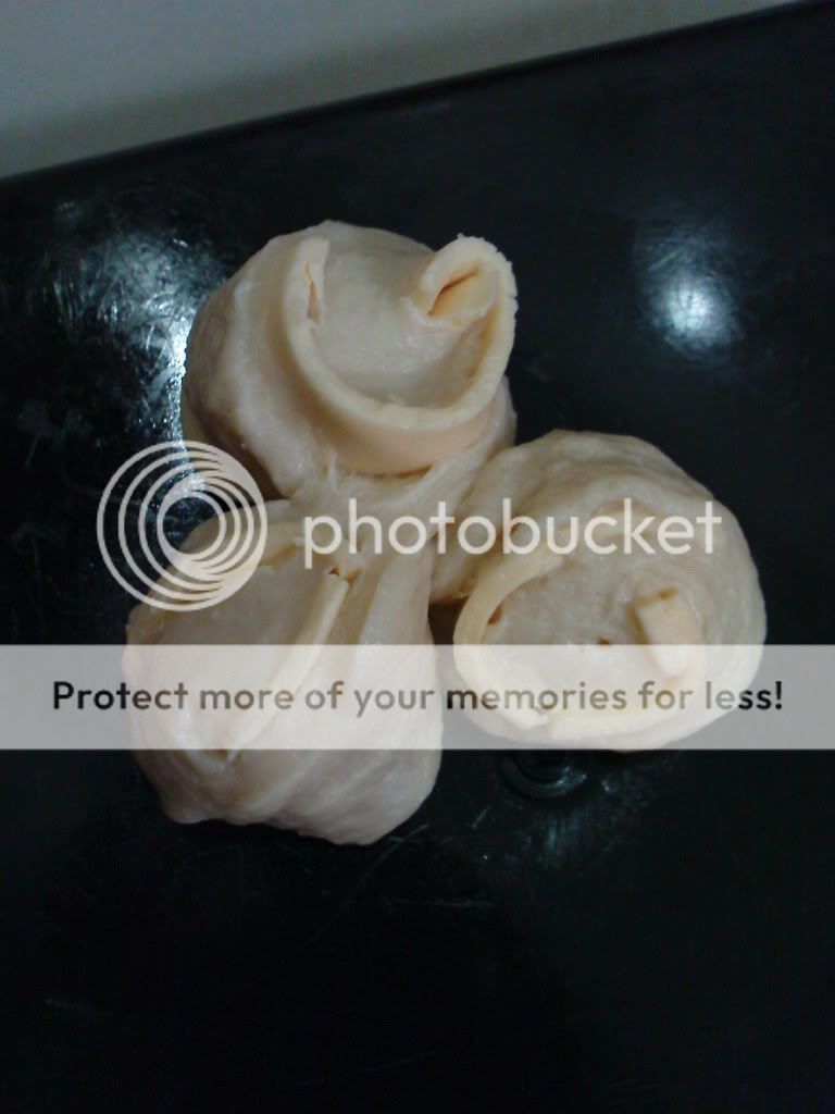 * 把即溶酵母加一点20克水搅匀,幼糖和盐放在高筋面粉旁,在高筋面粉堆中开一洞,慢慢倒酵母水进去,然后加入鸡蛋,汤种和剩下来的水揉成团。
