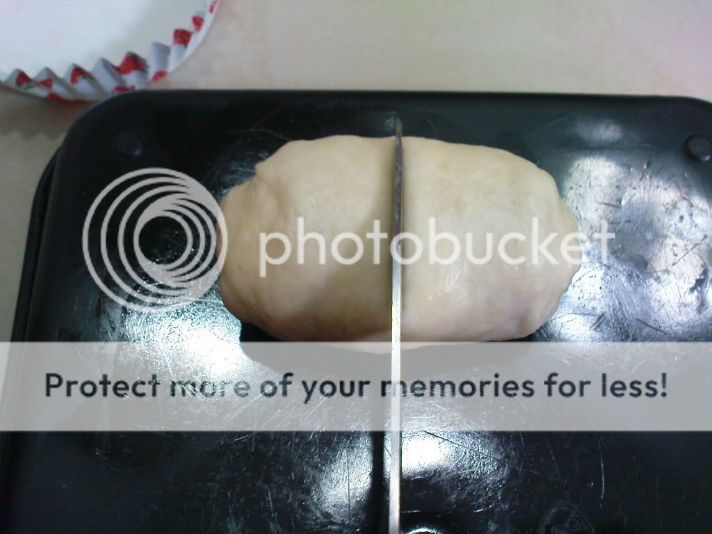 * 面团发酵至双倍大后再搓揉一会。把面团分成50克1份,搓圆待发10分钟 ,发酵结束后取出.