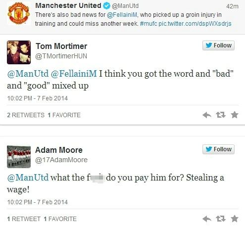 据曼联官方推特报道,球队在去年夏天引进的比利时国脚中场费莱尼旧伤未愈又添新伤,导致他的复出时间被迫推迟。费莱尼在曼联处于困境之时推迟复出,在社交网络上引爆了曼联球迷的愤怒情绪。据悉,手腕伤势即将康复的费莱尼原本将在本周末正式复出,但在最近的恢复性训练中,比利时人又伤到了腹股沟,这导致他的复出时间被迫推迟。曼联主帅莫耶斯在发布会上表示:“费莱尼在训练中腹股沟受伤了,这可能使得他再缺席一个星期的比赛,他的手腕伤势已经好多了,但本周有一天他觉得自己的腹股沟有所不适,我们会再多观察他几天。”原本费莱尼将在2月9日曼联对阵富勒姆的比赛里复出,但因为这次意外的受伤,比利时人不仅将错过这场对阵富勒姆的比赛,2月12日对阵阿森纳的比赛也无缘出场,他最快也要等到2月22日客场打水晶宫的比赛才能复出了。费莱尼在去年夏天以超过3000万欧元的身价加盟曼联,但迄今只在11场英超和3场欧冠联赛中出战,仅在联赛杯中为曼联打进1球。如今曼联前景堪忧,费莱尼的复出还被迫推迟,这导致很多红魔球迷出离愤怒。一名红魔球迷就在曼联官方推特下做了这样的回复:“你们XXX的花这么多签他干什么?让他白赚薪水!”