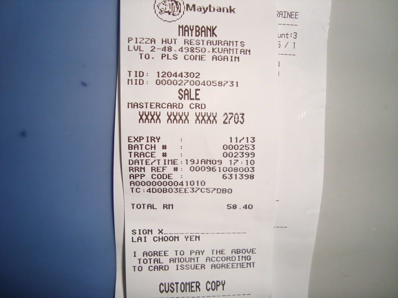 今天和朋友去吃Pizza真的吃到"一肚火",Order之前问辽用Maybank AMEX 刷是有30%折扣的,那个男服务员说确定有的,