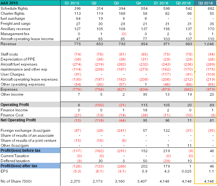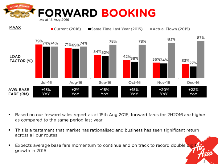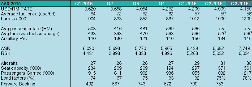 - 虽然以上都是利好, 不过由于考虑到 16Q3 MAS和Malindo Promotion的力度似乎有加强的情况, 加上AAX Q3增加大量新航线的初始Promotion Period, 以上是以15Q3的票价 +20%来做粗略估算.