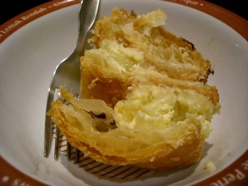 告訴你,真的是super好那個,很香的butter味,他是有點像croissant那纇牛油千層皮,脆脆那樣,加上裡面微甜的apple cream,真的好! |