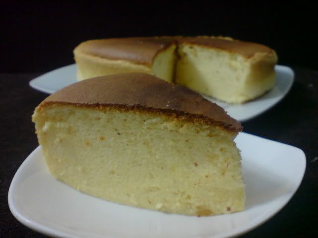 日式棉花乳酪蛋糕 做了 这个乳酪蛋糕 家里没有鲜奶, 我用橙味优格代替 好吃啦 6粒蛋 我用9寸的模型 烤好了, 竟然给我缩 唉