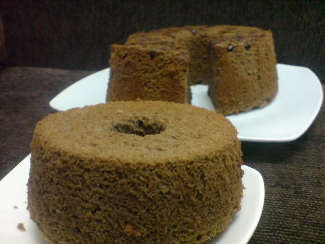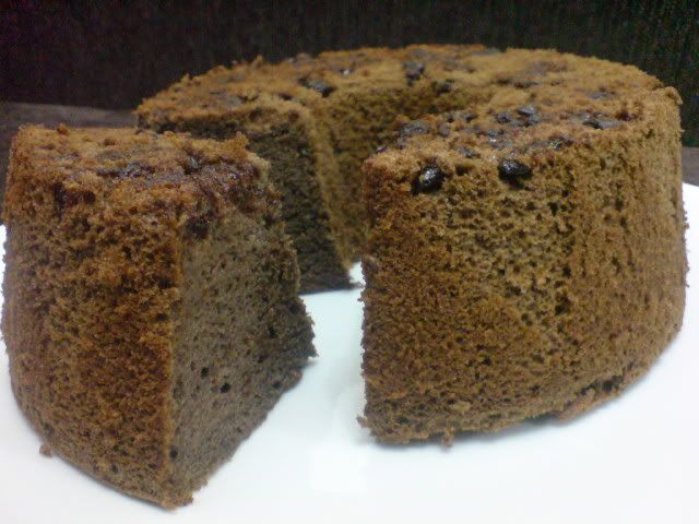 巧克力戚风蛋糕 用的是阿查拉的食谱 没有把巧克力沾好面粉, 所以都沉底了