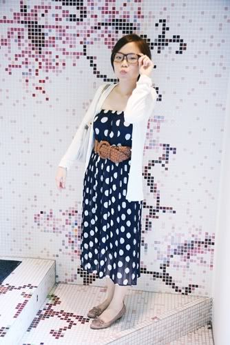 配合昨晚去吃韩国餐的打扮,手拿一个藤制包包,不过没有拍照~