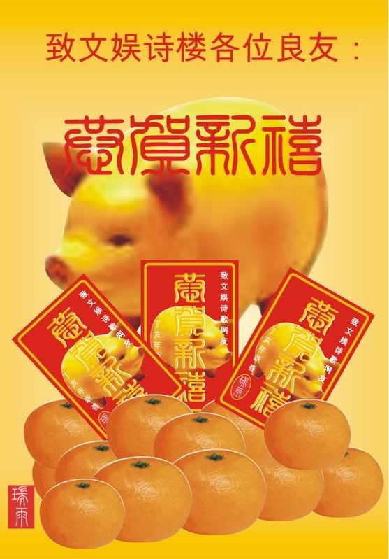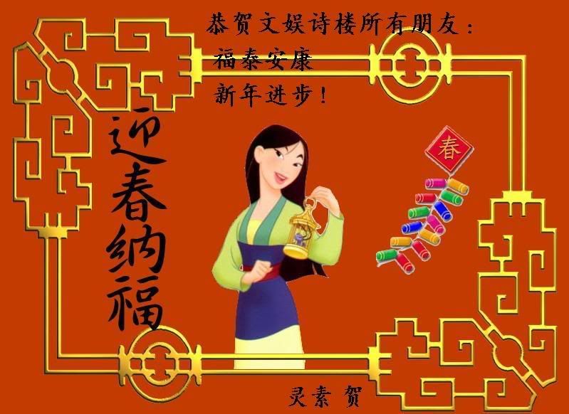 空气中弥漫着欢乐的味道,春风中洋溢着浓浓的亲情! 在这个举国欢庆的日子里,让我们体验一份永恒的温暖,拥有一份快乐的心情! 我把新年的问候,放在腾空而起的烟花上,祝福朋友们天天心情愉悦,岁岁喜气洋洋!也祝福我们的[文学广场:文娱诗歌]越办越好,成为朋友们心灵的家园!!