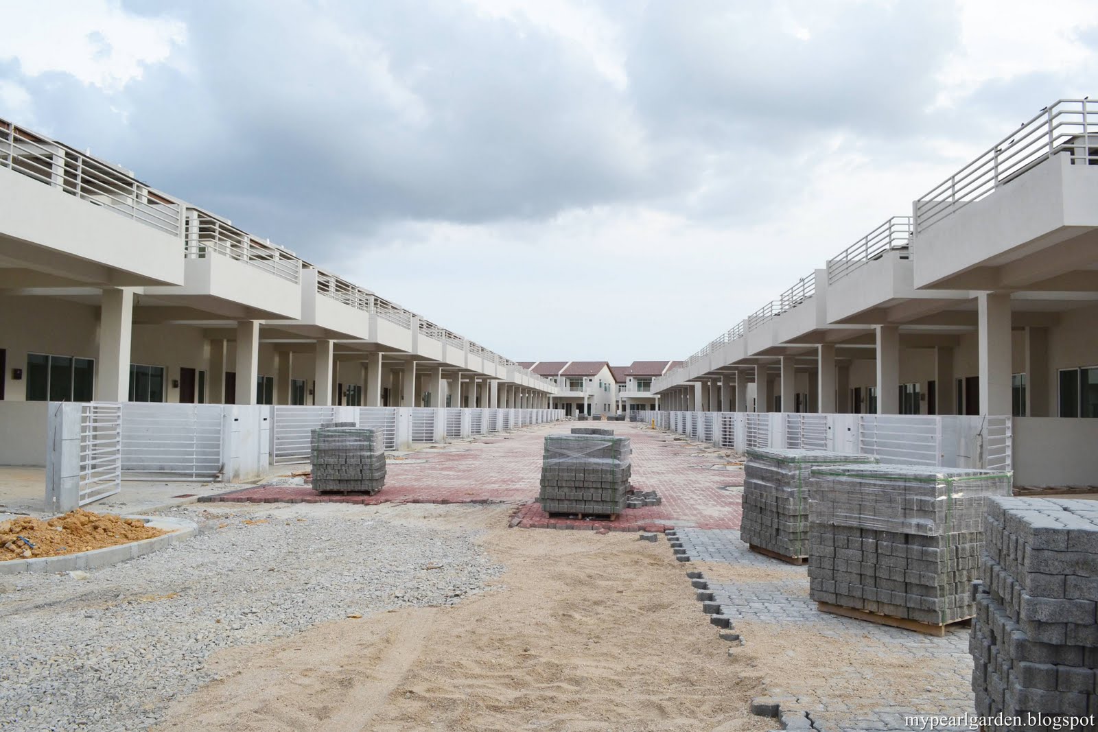 屋和屋之间的前面有一个小土地,应该会种树吧。Pearl Garden 的绿意主要还是在屋后,因为屋后的路会做成跑步道和沿路拿来种花草树木,目前还没有弄好。 |