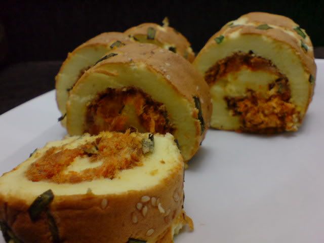 香葱肉松蛋糕卷 一直对这个台湾的食谱很有兴趣 香葱烤了香香的 蛋糕 好吃 好吃