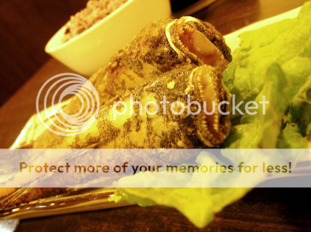 虽然我们餐厅没有卖炸的食品,偶为了满足特殊的顾客,还是回会收藏些小鱼,干煎或油浸,整条连骨带肉的啃尽.这是留给会吃鱼的人做的,否则不懂啃的人,很可能会嘴巴乱,手也乱,心也乱,恐还被鱼骨啃回头,那就麻烦了~