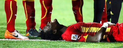 苏亚雷斯素有“假摔王”之称。在小组赛对南非队的比赛中,他博得点球的动作就被认为有假摔的成分。从慢镜头看,库内的铲球并未触及苏亚雷斯的脚,名哨布萨卡在经历了很明显的一番犹豫后,向门将库内出示了红牌。