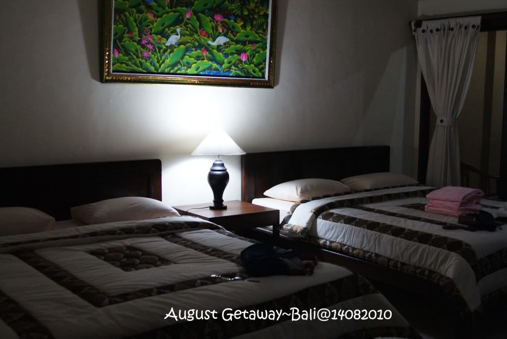 小插曲: 我也不知道为什么会选到这家住宿。网上资料不多,是不是个好的选择我不晓得。就是在找Ubud住宿时,从一家叫Jati Homestay误打误撞得引导过来。Ubud 住宿多得很,你要多便宜多有,就是看你要求什么而已。游览了他们的网站还觉得不错。试图找些评论的意见却找不到,唯一的参考资料是来自一个Ipoh的Blog。看了他的照片觉得还OK,就订了下来。早前提到的住宿出现问题,就是这间了。四月预定确定好后,出发前提醒了主人。回复的邮件告知他的住宿已经满了。吓了我一大跳。毕竟八月是旺季,很多地方已经客满了。想要短时间内找到合心意的住宿恐怕很难。友人说不必担心,Ubud的住宿到处都是,大不了就住贵一点的酒店咯。呵呵。心有不甘,还是回复了Jati 3 的邮件。一场误会,老板娘搞错了,住宿是预定了给我们的。老板娘不好意思向我们道歉,总算雨过天晴。后来找的几家代替Jati 3 的酒店到现在都还没有回复。想想如果jati 3真的没有预定到我们的房间,后果会是怎样?这5天4夜的住宿, 我还是钟情于它。