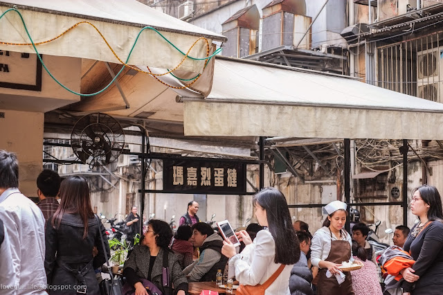 接下來就去吃澳門著名的葡式蛋撻,來到離我們酒店其實很靠近的瑪嘉烈蛋撻店。笨蛋鬼在來這裡前已經告訴了小氣鬼說網上對這家店的服務態度有很差的評價。小氣鬼做好了心裡準備才去排隊。在排隊的當兒,就親眼見證了網上的評論。老闆娘的態度真的很差,每一個顧客她都有辦法罵一頓。排在小氣鬼前的大陸客還錢時給了大鈔,她就罵買個蛋撻用那麼大鈔幹嘛。好啦,輪到小氣鬼了,結果也中招。