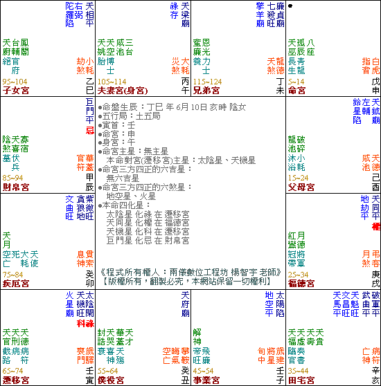 |機劫空廚碎 弟|微煞官神台哭虛 |刑鉞光 母|軍星路誥座廉虎 德|