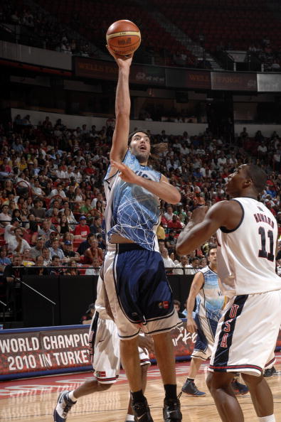 阿根廷在这届杯赛中只输了两场,都是败给美国。主场作战的美国队全副武装,再加上“恶补”之后的他们在外线开始找到感觉,阿根廷也不是他们对手,不过斯科拉在这两场比赛中还是打得有板有眼。特别是在决赛中,阿根廷队几乎在第二节就失去了斗志,只有斯科拉一如既往地保持镇定,仍然能在篮下占有一席之地。美国队甚至有时候还对他采取了包夹,但斯科拉仍然有办法得分。除了篮下强打之外,他的中距离投篮命中率也不低。