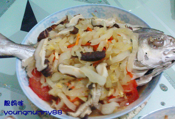 因为鱼比较大只又厚,所以水滚放进鱼,蒸9分钟就可以咯!