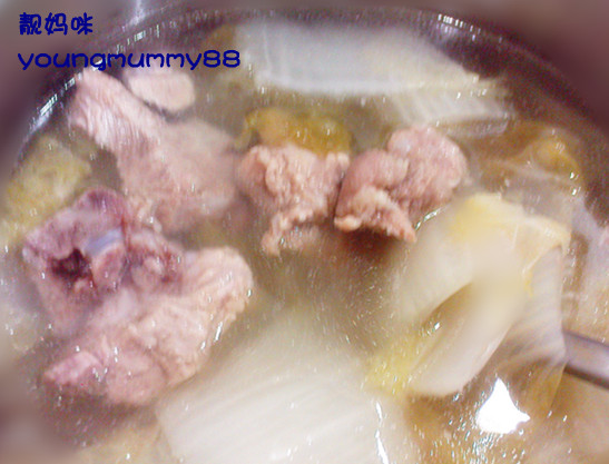 用了:水梅一粒,番茄一粒切块,香菇切片,咸菜丝,一些酱清,水少许。