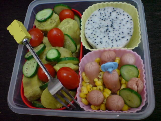 你的便当这样还算没技巧,那我的不是更更更没技巧,完全没装饰,随便塞进便当盒就算了。。。  |