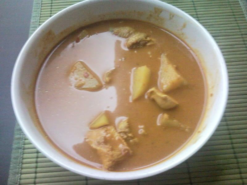 你的咖哩鸡有很多汁,可以沾面包来吃
