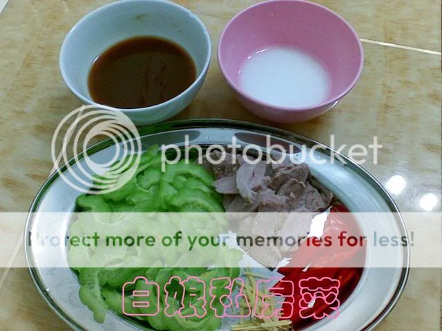 苦瓜1/3碗(切片,用适量盐捞匀,腌10分钟,苦涩味没那么重)