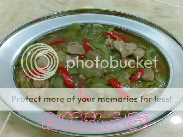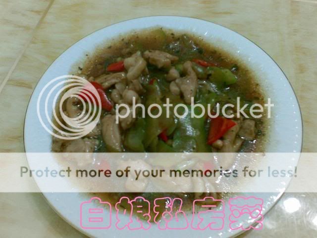 5-8分钟,下红辣椒片,下蜀米粉水,勾芡,上碟。 |