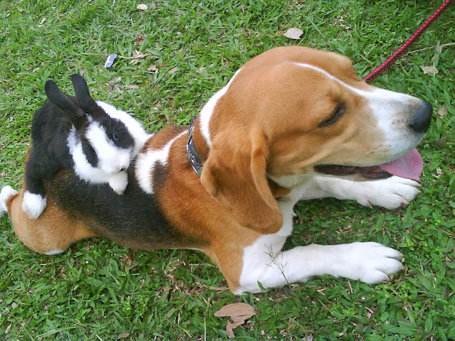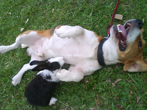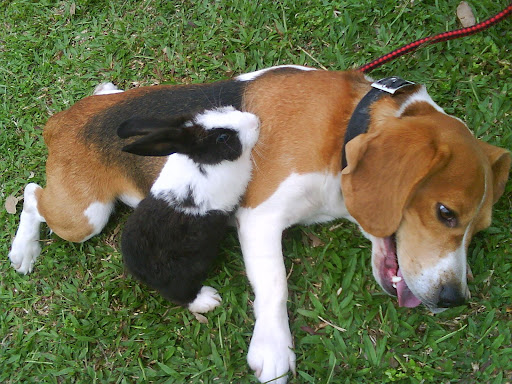 seanong..beagle是猎兔犬。。但它对兔子没反应。。
