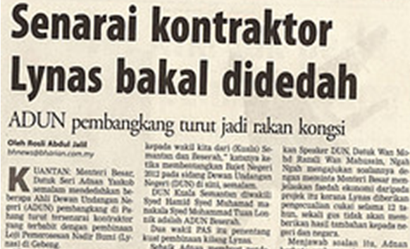 [size=85%]Keratan akhbar, Adnan berjanji mahu mendedahkan kontraktor Lynas