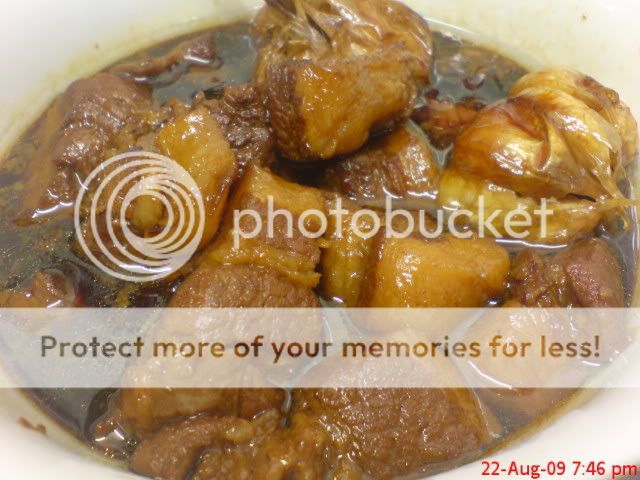 自己和他是超爱肥肉的,所以这样的花肉经常都会在我家的餐桌上出现.通常我都是在晚上就焖它大概两小时,隔天要吃时再焖大概一小时,这样一来花肉都被焖得超软的,超好吃.吃剩的还可以做卤肉面,汁也可以收起当'陈年'卤汁用.哈!好像完全没有浪费的意思.