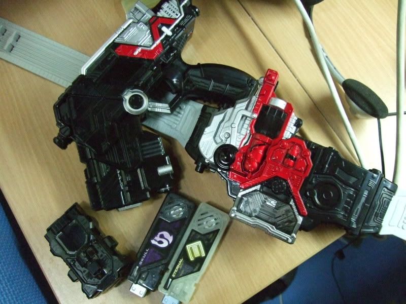 網上面有些人放的假錢沒過百,而我在這裡看到的剛剛過了一點點。(p.s.現在超級戰隊goseiger的 tensouder 在台北有現貨,可是價錢跟我的 lost driver 和 skull magnum 的價錢有的比 ) |