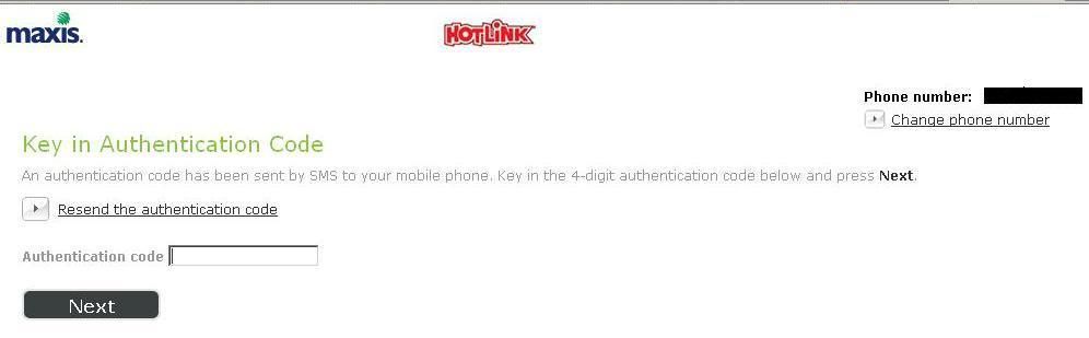 3. 输入号码后, 你会收到SMS. 里面有4 digits的authentication code.
