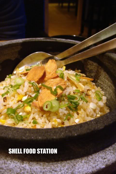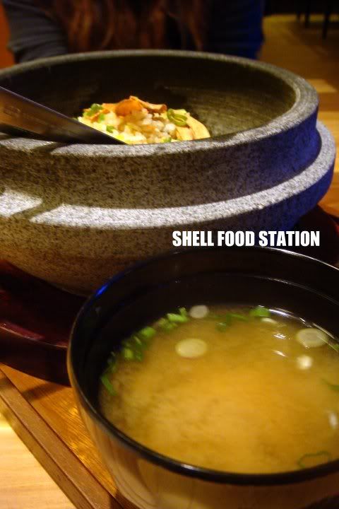 有送miso湯~~還是第一次看放在石頭碗@garlic rice~~