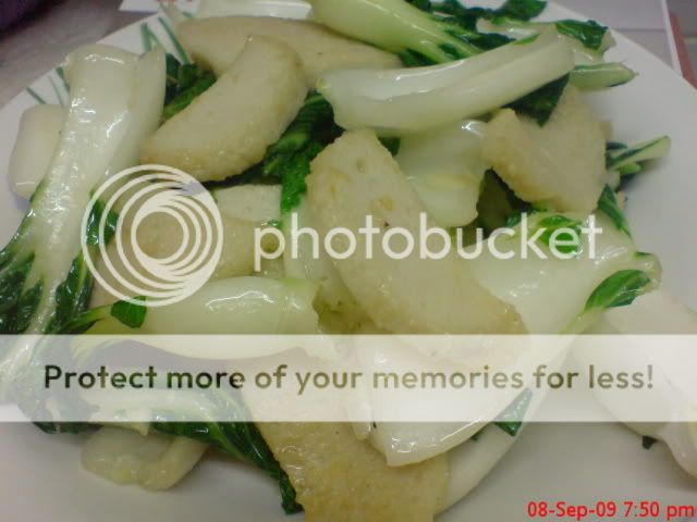 昨天的晚餐-酸甜鱼加鱼饼炒奶白菜.原本我已经对他说了我只是吃菜而已,因为他打算晚餐后就买我家楼下MAMAK档的ROTI CANAI去朋友家(他朋友全家都非常喜欢我家MAMAK档的ROTI CANAI)谁知道我看到酸酸甜的鱼竟然忍不住吃了一碗饭,因为这样的菜配饭吃真的是一流的,哈!(我又来自夸了)